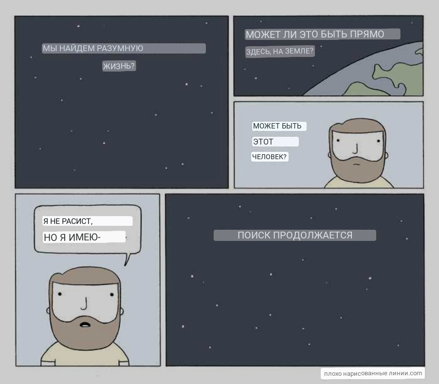 >>216842>Если бы что-то, не относящееся к недостаткам определённой расы, то к чему такое вступление?Одно дело - говорить про определенные и реально существующие недостатки, другое - придерживаться идеи неполноценности определённой расы и (в особо запущенных случая) необходимости полного истребления всех её представителей.Человек на пикче вполне мог сказать: "Я не расист, но по статистике чёрнокожие совершают больше ограблений магазинов в год, чем белые" Это расизм? Это максимум слепая вера в статистику. Расизм тут может угядеть только тот, кто хочет его везде видеть.