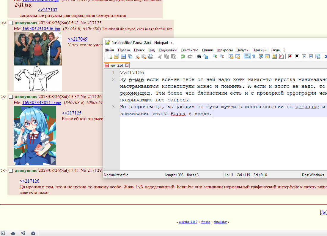 >>217126Ну ё-маё если всё-же тебе от ней надо хоть какая-то вёрстка минимально как настраиваются колонтитулы можно и помнить. А если и этого не надо, то да, notepad.exe рекомендед. Тем более что блокнотики есть и с проверкой орфографии чем вообще покрывающие все запросы.Но в прочем да, мы уходим от сути шутки в использовании по незнанке и факта тотального впихивания этого Ворда в везде.