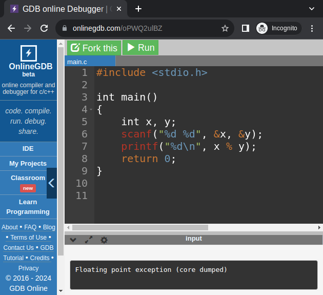 Удивляет вообще Floating point exception